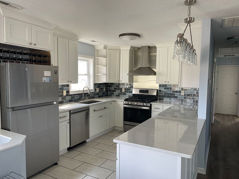 The house has an updated kitchen on the second floor , 3 bedrooms upstairs all have been updated and painted. All 3 full bathrooms are updated. 2 rooms downstairs can be bedroom, or work office. Pet friendly.
