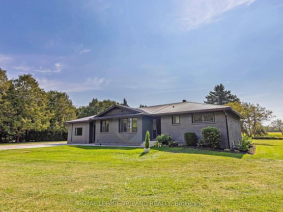 Belmont Estate Eco-conscious Country Living. Once in a while, a property comes along that feels like a deep breath and maybe a quiet escape from your spouse, your kids, and the group chat. This 1.5 acre estate in Belmont offers rare privacy and tranquility, just 15 minutes from London, yet a world away from the noise, stress, and sirens of city life. Surrounded by rolling pastures and a 30-foot cedar perimeter (natures version of do not disturb), the updated mid-century modern home blends timeless design with eco-conscious living. Geothermal heating and cooling mean you can live sustainably while pretending you understand how it works. Inside, the lower level is a whole world of its own featuring a newly renovated, massive recreation room with a wet bar (perfect for hosting or hiding), two additional bedrooms, a bathroom, a cedar sauna for sweating out life's regrets, and enough storage space to lose things forever. Whether you're entertaining guests or escaping them, this space delivers. The grounds are a dream: open lawns, a small orchard, and gardens that practically raise themselves. Multiple outbuildings, garages, and a workshop offer endless possibilities whether you're building a life-sized Millennium Falcon, hiding from your in-laws, or finally starting that side hustle that involves power tools and zero meetings. This is more than a home. Its a lifestyle upgrade. A sanctuary. A place where the loudest thing you'll hear is a cricket unless you count your own laughter echoing across the fields