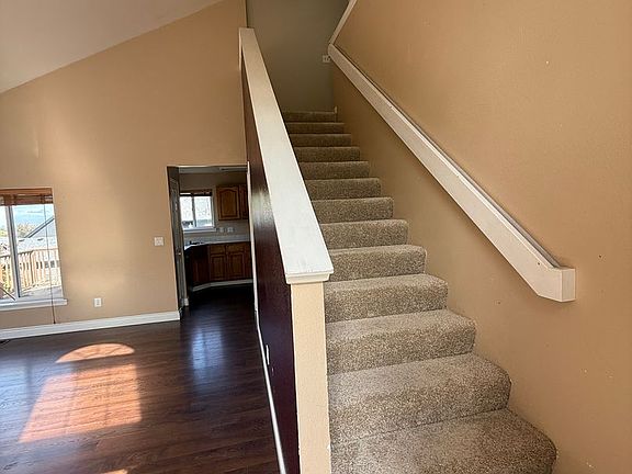 There is new carpet being installed in the currently carpeted areas in the home, and new paint in the upstairs bedrooms! This backyard is amazing, included with a patio downstairs and a porch off the back upstairs. The garage is large, providing ample storage, and the landscaping provides ample privacy from neighbors.