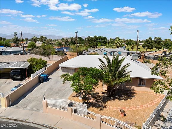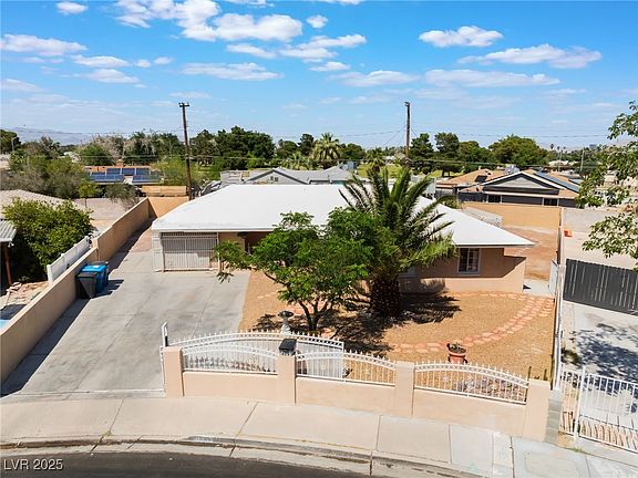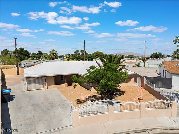 Charming Hacienda old world home has three bedrooms one bath. Very large pie shaped property great for RV parking. Gated property has a converted garage, which can be a great family room or a "man cave". New foam insulated roof saves energy and has a lifetime warranty. Ceiling fans in each room, lovely side patio close to many popular stores and restaurants, bus lines, Springs Preserve, Meadows Mall, and YMCA.