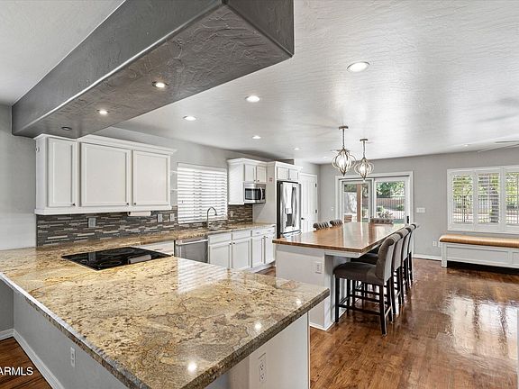 Beautifully updated single-level home with pool and solar in a prime North Phoenix location! This 3 bedroom, 2 bath residence offers approximately 1,400 sq ft of thoughtfully designed living space and a spacious open-concept floorplan. The heart of the home is the large, upgraded kitchen featuring a custom island with generous seating—perfect for entertaining and everyday living.