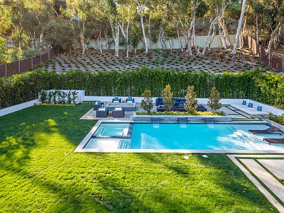 A rare parkland estate with a massive backyard that rivals the size of a soccer field & is fronted by a brand new 2019 home designed by Clark Remington in the scenic neighborhood of Rustic Canyon in Pacific Palisades. The house is 8,505 Sq.Ft. on 3-levels & is idyllically situated above a picturesque tree-lined street with nearly 100 feet of frontage. Almost a half-acre lot at 21,086 Sq.Ft. with a sprawling backyard plus Baja pool, spa, fire-pit, multiple seating areas, outdoor kitchen & seemingly endless places to play, sun-bathe & entertain, all accessed via oversized sliding doors that disappear into a family room wall to encourage indoor/outdoor living. Upstairs 4 bedroom suites plus a family room; main level bedroom suite & office/study & lower level with an additional bedroom suite, movie-theater, recreational room, bar & game room with stairs that lead up to the backyard. The house is moments to the Pacific Palisades Village, shopping, restaurants, schools, beach & hiking trails