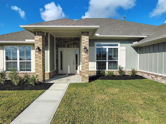 It's your time to GET THAT HOUSE YOU BEEN WANTING® Move-In-Ready, STUNNING 2300 SQFT Cul-De-Sac NEW CONSTRUCTION home on a 70' Lot, 4 bedroom 3 full baths, LARGE OFFICE/FLEX ROOM, GARAGE REMOTE, natural lighting and standard upgrades such as MOEN nickel brush finishes, modern WAINSCOTING, High ceilings, stainless steel appliances, LVP flooring, heavy duty blinds on all windows, double pane low E windows, full sodded front and back yard, Large garden soaking tub, spacious shower and more, nestles in the charming and prestigious Greystone Subdivision a block away from Angleton Police Department and Recreational Center. It offers a strong sense of community, low property tax rate, easy commute to main highway 288 and 35 and zoned to a top tier Angleton school district. THIS CUTIE WELCOMES YOU!!! All measurements are approximate.