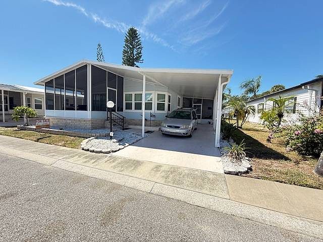 Located in quaint Tarpon Springs, Tarpon Glen is a 55+ retirement mobile home community which features on-site fishing, shuffleboard, and a community swimming pool all set among the beautiful palm trees that the area is famous for. Tarpon Glen also offers you a spacious clubhouse to host social gatherings, organized community outing, and planned activities. Enjoy the nearby beaches, state parks, and world-famous Sponge Docks. This 1989 home features 2 bedrooms and 2 bathrooms and is being sold PARTIALLY FURNISHED. Be sure to check with your agent for what stays with the home. The home features that open floor plan everyone is always looking for and has some amazing updates. The roof was replaced in 2025 and the air conditioning unit in 2020. The washer and dryer were replaced in 2025 and the home features an ac surge protectors, and a whole home surge protector both installed in 2020. The irrigation system was installed in 2020, and in 2022 the windows were replaced with vinyl windows. The slider was replaced in 2022, and the gutters and downspouts were also replaced in 2022. The vapor barrier was replaced in 2023, and the hurricane tie downs were replaced in 2025. The vinyl flooring throughout the home was laid in 2020. The living room features cathedral ceilings, neutral walls and an upgraded ceiling fan. There are sliders to one of the two lanais on the home. The kitchen has gotten a complete remodel. You are going to fall in love with this kitchen. There are tons of white cabinets and quartz counters. There are upgraded appliances, an eat-in area with nice lighting and 4 windows and the kitchen has a tile backsplash. The dining room is a large area with tons of white pantry cabinets. The master bedroom is a very large room with vinyl flooring, 2 double closets and is open to the beautiful ensuite that was recently remodeled with a double vanity with quartz top, tile flooring, and a large linen closet. The step-in shower was custom done and features a rain head. The second bedroom is the perfect place to host family and friends. There are vinyl floors, and an upgraded ceiling fan as well as a step-in closet. The guest bath has vinyl flooring, neutral walls, a new vanity and a tub/shower combo with glass doors. The home features 2 lanais. The one of the from of the home is a great entry to the home with sliders to the living room. The lanai on the back of the home has carport entry, and it open to the shed and breezeway to the backyard. All Florida Mobile Home Sales Inc. cannot guarantee or warrant the accuracy of this information or condition of this property. The buyer assumes full responsibility for obtaining all current rates of lot rent, fees, and pass-on costs. Additionally, the buyer is responsible for obtaining all rules, regulations, pet policies, etc., associated with the community, park, or home from the community/park manager. All Florida Mobile Home Sales Inc is not responsible for quoting of said fees or policies. LOT RENT: $867 and includes water, sewer, lawn, trash and taxes. Additional water usage billed bi-monthly.