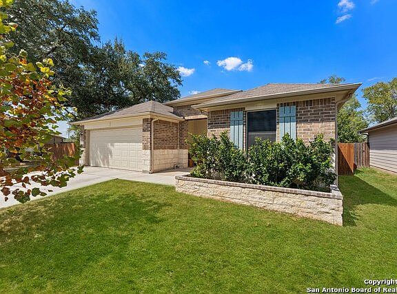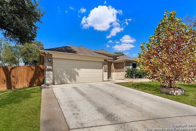 This 3-bedroom, 2-bath home at 829 Margay Loop in Seguin, TX features an open floor plan with granite countertops, stainless steel appliances, and a spacious living area. The master bedroom includes a private bathroom and walk-in closet. Outside, there's a fenced backyard with a covered patio, and the home is located in the Arroyo Ranch community with easy access to nearby schools, shops, and highways.