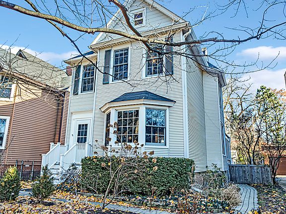 Discover this charming 3-story vintage gem, nestled just a block away from the serene lake and lush park. This idyllic home boasts proximity to commuter conveniences, shopping options, and the historic lakefront district. Recent upgrades make it even more appealing, including a sparkling new kitchen with stainless steel appliances, a freshly renovated half bath, and a sunlit enclosed back porch. Step inside to a newly expanded floor plan that effortlessly connects the dining area and kitchen through a two-sided fireplace, creating a warm and inviting ambiance. On the second floor, a completely renovated full bathroom awaits, alongside a primary bedroom with an adjacent sitting room and three additional bedrooms. The third floor is a bright, skylit space that can serve as a bedroom, den, or office, limited only by your imagination. Outside, you'll find a 2-car garage, a welcoming front yard, and a private, enclosed backyard. Additional modern comforts include a new furnace and AC condenser and a newly finished basement with a laundry room. This property combines vintage charm with modern convenience, offering endless possibilities for comfortable living.
