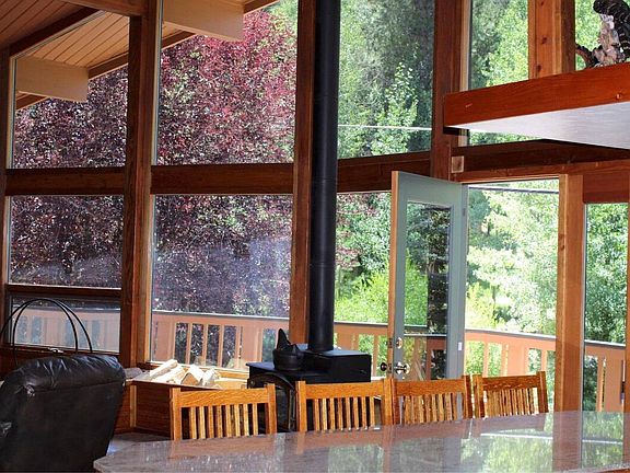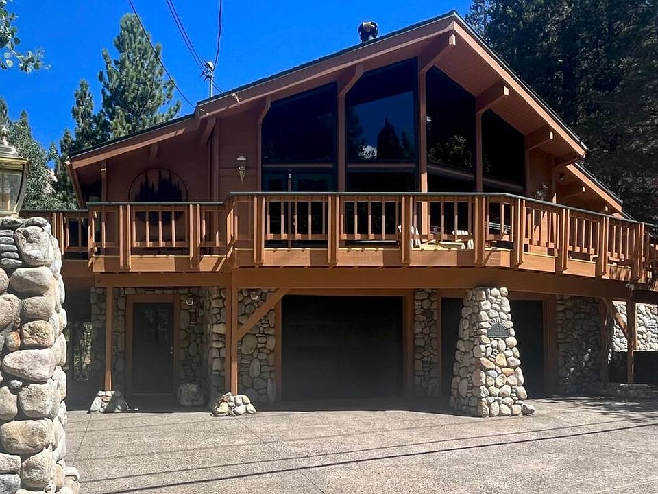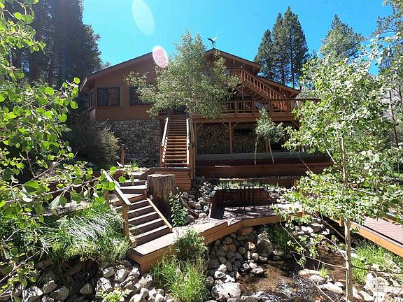 Nestled in an aspen grove on the banks of Reverse Creek, next to June Mountain Ski Resort, with stunning views of Carson Peak, this beautiful family home gives everyone the space they need to enjoy the mountains. 5 Bedroom, 3 Bath, 2607 sq ft house is 1 mile to June Mountain ski lifts and features: large hot tub overlooking Reverse Creek; expansive backyard secluded in nature; grand front room with mountain view; steam room; large screen TVs in each room; new kitchen appliances; 3 car garage. Back yard has 3 stories of decks and a bridge over the creek. Perfect for a family looking for a beautiful chalet in California's most charming mountain town!