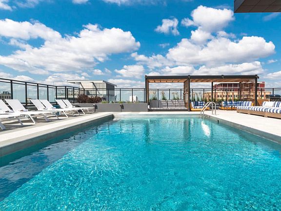 This apartment offers breathtaking top-floor skyline views and a private balcony. It comfortably sleeps five with two queen bedrooms and a single rollaway bed, complemented by two bathrooms. The fully equipped chef's kitchen includes complimentary Nespresso and tea. Entertainment is at your fingertips with a Sonos sound system and smart TVs. The building also features a 2,600 sq ft health club.
