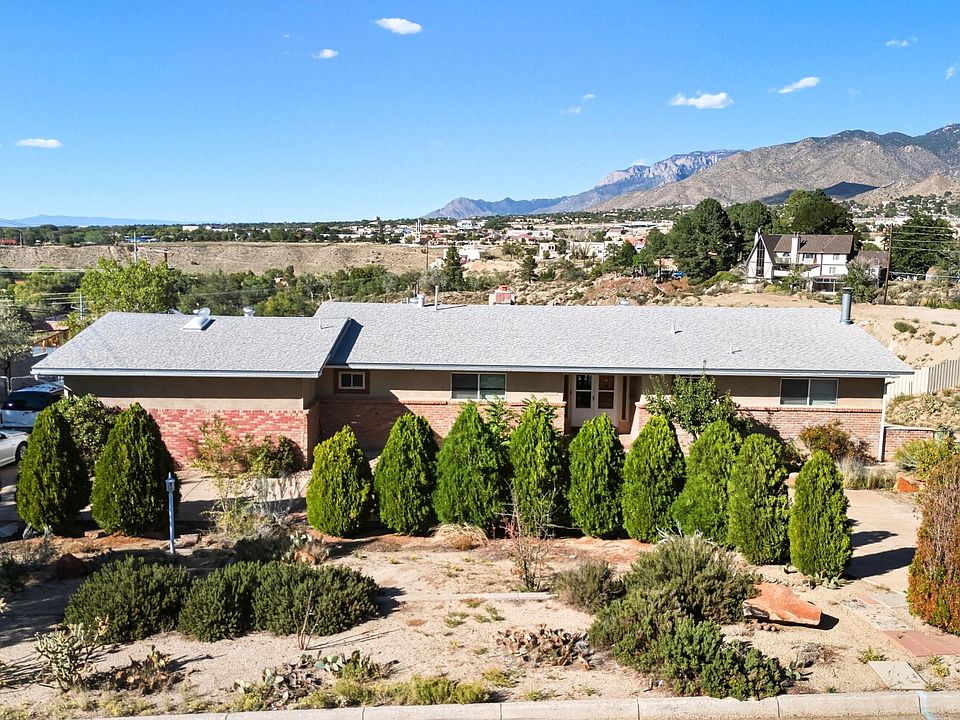 A true Four Hills unicorn! This 4,000 sq ft home offers 5-7 bedrooms, 3.5 baths, and a basement apartment with 1-2 additional bedrooms. Mid-century style shines with wood ceilings, a brick pass-through fireplace, and spacious living areas ready for your updates. THE RARE FIND SITS ON 2.3 acres - SITUATED ON 5 LTOS... AND THERE IS A POTENTIAL acquire 4.5 more adjoining acres--this horse property is ideal for creating a private ranchette. Enjoy sweeping views of the Sandias, city lights, and even Mt. Taylor. With great bones, investment potential, and a highly desirable location, this gem is ready to be reimagined (BUT IS FULLY OPERATIONAL AS IS!) OR AQURE IT ALL AND RE-IMAGINE IT AS A SUBDVISION!