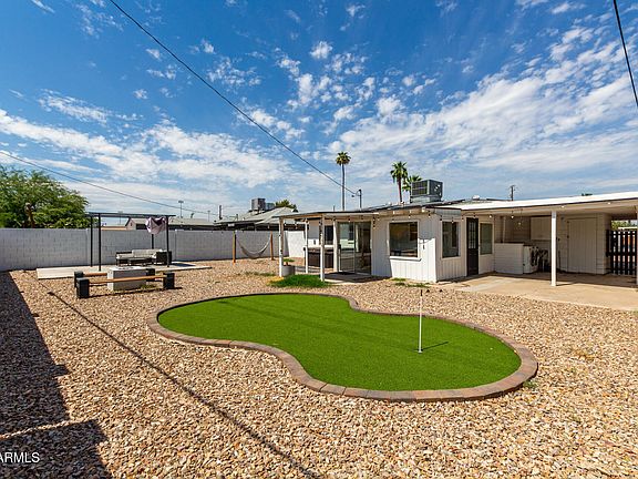 Enjoy easy living in this energy-efficient single-story home with carport parking! Perfectly located near restaurants, entertainment, and many more. From the moment you enter, you will immediately notice the seamlessly flowing open floor plan featuring wood-look flooring, neutral palette, tons of natural light, and ceiling fans throughout. The kitchen displays white cabinets, stainless steel appliances, tile backsplash, and butcher block counters. All sizable bedrooms promise a good night's sleep after a busy day. Fantastic Arizona room adds extra space, ideal for entertaining guests or relaxing year-round. Spacious backyard offers a covered patio, putting green, and pergola. Hurry! A deal like this won't last long!