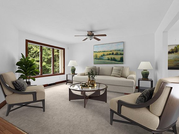 Nestled in a peaceful country setting, this meticulously maintained home sits on 10 beautiful acres, offering privacy, nature, and modern comfort. From the moment you arrive, you'll appreciate the charm of the stamped concrete porch, leading you into an impressive two-story foyer. Designed for both elegance and functionality, the home features formal living and dining rooms with picturesque nature views. The spacious kitchen is a chef's delight, boasting abundant cabinet and counter space, stainless steel appliances, a pantry, and an eat-up bar that seats four. The oversized family room, open to the kitchen, is perfect for gatherings, featuring a beautiful wood-burning fireplace and custom built-ins. A remodeled half bath and main-floor laundry enhance everyday convenience. One of the home's standout features is the four-season room, your personal oasis with stunning property views, a vaulted ceiling, new flooring, and a hot tubideal for relaxation year-round. Upstairs, the primary suite impresses with double doors, a vaulted ceiling, and two double closets. The private en-suite bath has been tastefully updated, including added insulation for enhanced warmth and comfort. Two additional spacious bedrooms and a remodeled family bath complete the upper level. The finished lower level extends your living space with a large family room featuring new carpet and built-in cabinetry. The opposite side offers durable vinyl flooring, making it a great space for crafts, a playroom, or a home gym. A cedar closet and generous storage areas provide additional convenience. Outside, the rolling hills and oversized deck set the stage for outdoor enjoyment. The barn, equipped with electricity and a generator hookup for both the barn and home, offers endless possibilities. The fenced backyard, complete with 42" gates for easy mowing access, is perfect for pets or play. A second outbuilding provides even more storage. With breathtaking views, lush perennial gardens, and ample space to roam, this property is a rare find. Don't miss your chance to experience country living at its finest! (Refrigerator, dishwasher, washer and dryer all less than 4 years old)