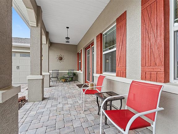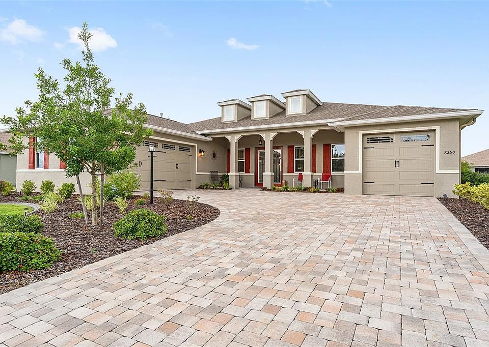 Welcome to 8290 SW 92nd Circle in the West Kestrel neighborhood of Candler Hills in Top Of The World! Greeted by the professional landscaping and the welcoming front porch, you know you are home! You will enjoy the special touches the sellers made to this highly desired Aberdeen Model. Like many new homes, you need to look for the added value items done by the seller to make it their home. The neutral choices they made will let you move right in! The Aberdeen has three bedrooms and three baths with two primary suites plus a den/flex room. The home has so many desired standard features, along with many items added at the Design Center: Ceramic plank flooring throughout the home, Drywall with round corners, Neutral gray paint in every room, Dovetailed drawers and upgraded hardware throughout the home. In the kitchen: Crown molding added to the 4 level staggered kitchen cabinets, three-drawer bank was added replacing cabinet doors, and in addition, the home has a beautiful 112” x 54" island featuring Cambria Quartz/Summerhill countertops with a bull nosed edge. Two solar tubes were installed above the island! As a bonus the island has disappearing electrical outlets that will pop up when needed and stay out of the way for a clean look! Electrical outlets with dedicated switches were added above the cabinets. The neutral backsplash with mastic grout and tile edged trim are timeless. Of course, the cabinets have pullout drawers for your convenience! The GE thirty-six-inch six burner gas range will handle cooking needs. Clean-up is easy with the GE forty-five decibel stainless tub dishwasher. A highly rated top-of-the-line LG refrigerator is also included. There is a solar tube added to the kitchen plus another down the hall leading to the third car garage. Ceiling fans are found throughout the home, lanai and garage. In the great room, the seller added recessed lighting, a floor outlet and a dedicated twenty-amp outlet for an electric fireplace. In the Flex room there is recessed lighting and low voltage media wiring for TV, Internet and phone. Custom lanai solar shades are also included! The owner added Levelor blinds with remote drapery and hardware in the great room and dining room and owner’s suite. The enclosed lanai has a level floor to the great room and a twenty-four-inch knee wall. Seller also added a GFCI outlet plus a ceiling fan with lighting along with painted walls. Outside the lanai enjoy the professionally landscaped beds with concrete edging plus a 38x10 patio area for your outdoor entertainment! As you might expect, the bathrooms are over the top! The owner’s suite has beveled edge mirrors, three drawer bank, 1x3 herring bone designed shower floor. All three baths have upgraded 10x14 tiled shower walls and Delta fixtures. The laundry has upgraded laundry cabinets with a sink base, granite countertop with bull nosed edge, top-of-the-line LG washer and dryer, 220 Volt outlet at dryer and drop-in laundry tub and faucet. Outside you will find the rich-looking paver driveway, professional landscaping with curbing. The seller added gutters and leaders to move rainwater away from the home. This home has over $100k in options between the seller and design center. You will not find these special touches in a new construction at this affordable price! Thinking of building? Look here first and be amazed with what this home offers at this price! HSA Home Warranty is included Call Today!