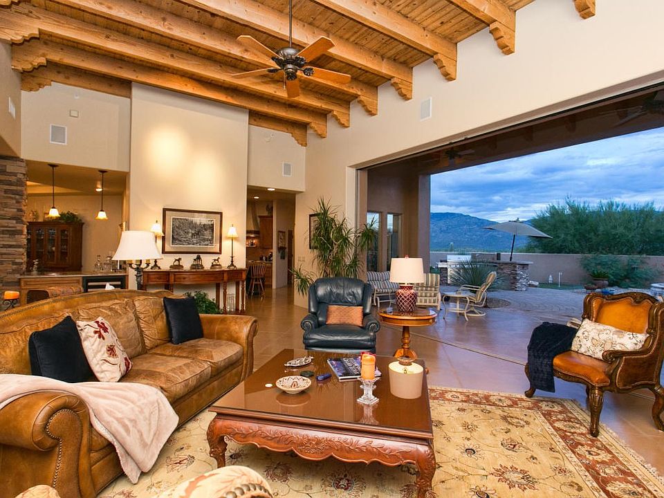 No detail overlooked, no expense spared! The epitome of excellence - not only a true custom home but built by the builder for his family! Situated to maximize the mountain views, with expansive outdoor living space. Sliding, concealed doors bring the outside in to the great room. The details you'll see - kitchen cabinets, polished concrete floors, master suite, are first class. The details you won't see - inside the walls - the best. Beautiful touches yet a perfect home. Guest wing features 2 bedrooms and 2 baths; master suite has access to the patio. Situated on a corner acre lot, plenty of privacy too. Prepare to fall in love!Owner is Licensed Real Estate Agent