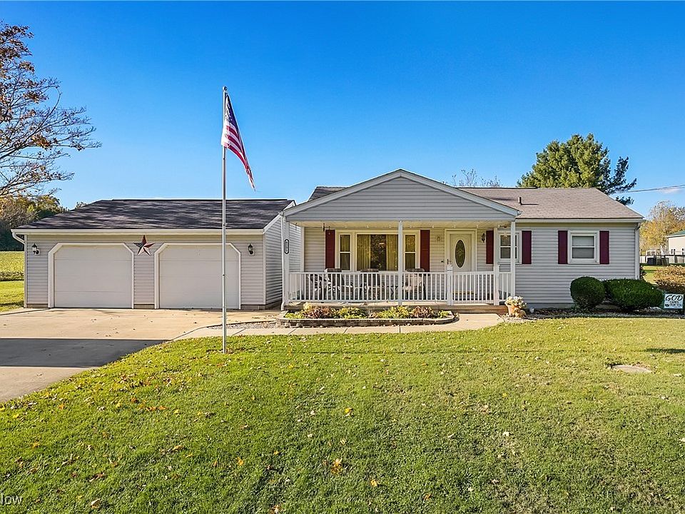 Welcome o your new address! This wonderful home has been exceptionally maintained by the same owners for many years! This ranch is a cozy, well maintained beauty! Great curb appeal! The kitchen is nice sized and leads to a wonderful 24x14 covered deck The family room is a wonderful surprise and it leads to the deck. There is another surprise....a very nice basement under the family room. You will love the finished garage with the concrete drive. So come, bring your swing and sit on the front porch and watch the world pass you by.