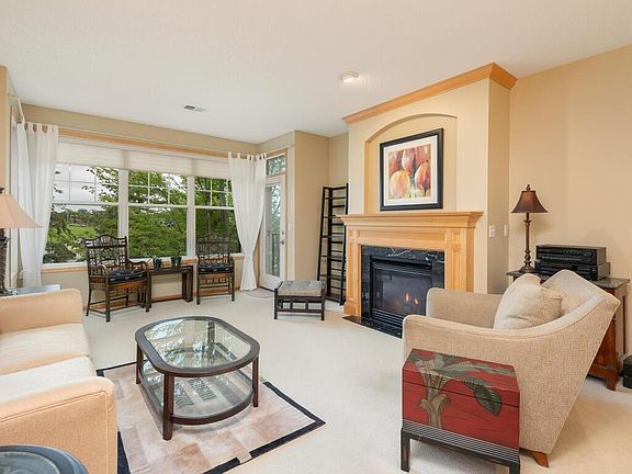 Fantastic second floor condo floorplan with elevator close by. 2 Bedrooms, 2 Baths, Den/ office, 2 car garage. Center island kitchen, living room with gas fireplace and deck. Primary bedroom with shower and whirlpool tub. In unit laundry room. Fantastic location near Eden Prairie Center. Underground parking with "garage within garage" own private two car garage door.