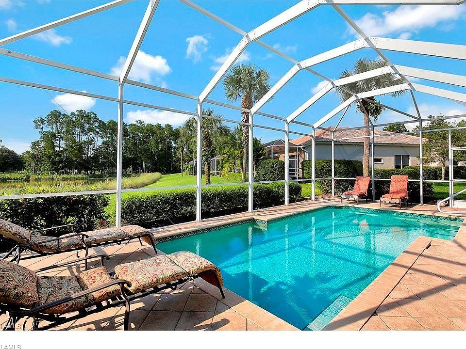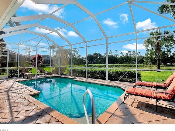 Augusta model overlooking lake, preserve, & Golf course... Home features an open floor plan, eat in kitchen plus formal dining area and a large heated pool located on one of the largest villa lot within community. Tile flooring in foyer, kitchen, & baths with Hardwood floors in all main living areas. Screened entry for cross breezes, extended driveway for additional guest cars with lots of privacy. Located in the Vanderbilt Country Club's newly refurbished Golf Course, Naples premier Bundled Golf Community will become Naples NEWEST! Drive your own golf cart, state of the art Fitness center with on site personal training, and soon Massage therapy, Dine in one of three Restaurant Enjoy a resort style pool, with poolside Terrace Caf, Bocce Ball, Tennis, and Championship golf.