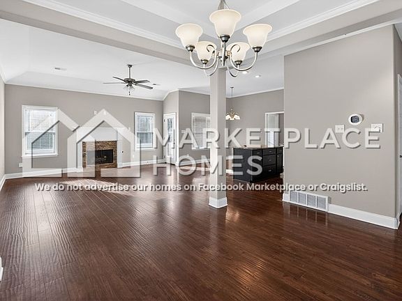 Beautifully designed 4-bedroom home offering the space and freedom you deserve! The bright and open floorplan features tons of elegant details throughout, including engineered hardwood floors, crown molding, and a cozy gas log fireplace. Never fall short on options for entertaining with the large family room, formal dining room, and the spacious eat-in kitchen. The sleek and modern kitchen comes equipped with stainless steel appliances, granite countertops, pantry, and subway tile backsplash. Located on the main level, the primary suite boasts a walk-in closet and a beautifully updated master bath with dual sinks, tiled shower, and soaking tub. Upstairs contains the 4th bedroom with full bathroom, offering the ideal setup for a guest suite/teen suite or a home office. Enjoy grilling and entertaining outdoors in the fully fenced backyard with walkout patio. Located close to schools, parks, shopping, and restaurants. Schedule your showing today!