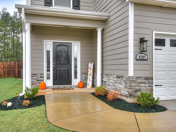 Covered front and back porch with an extra patio slab out back that would be great for grilling.  Large, flat back yard is surrounded by a privacy fence that backs up to a wooded area for additional solitude.