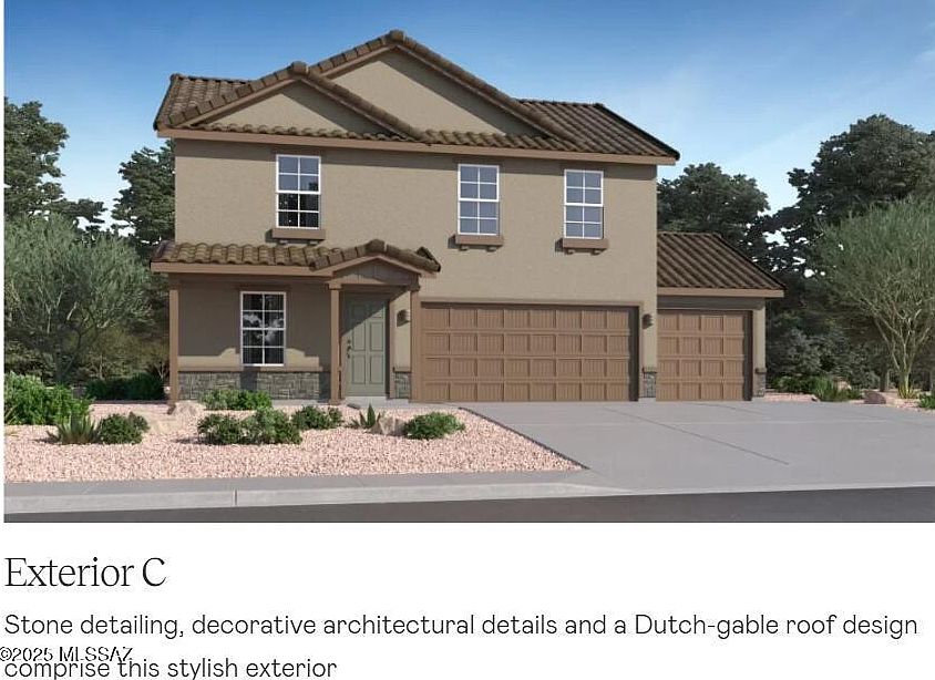 On the first floor of this new two-story home, the stylish kitchen shares a footprint with the nook and Great Room, and the luxe owner's suite is nestled into a private rear corner, complete with a spa-inspired bathroom and walk-in closet. Upstairs, three secondary bedrooms surround a spacious loft area, providing a convenient shared living space ready to meet the resident's unique needs. A three-bay garage completes the home. This home includes GE(r) stainless steel appliances, Rinnai Tankless Water Heater, prep for reverse osmosis, Granite Countertops, 2'' faux wood blinds, LED lighting and so much more! As an added bonus, this home includes a washer and dryer, plus a low-maintenance backyard with beautiful gravel landscaping - move-in ready and waiting for you!