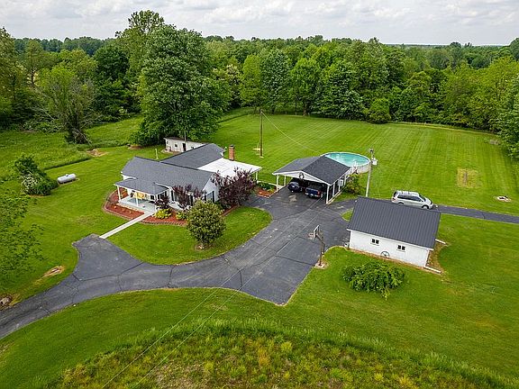 Fully remodeled 3 bedroom, 2 1/2 bath country home with 2,400 sq. ft. of living space situated on 10 acre mini-farm just minutes from Madison or Hanover.Living space includes 400 square foot detached building (currently used as man-cave but could be 4th bedroom, office space, or great-room).Custom cabinets and granite countertops complete the kitchen. House sits 1/4 mile off the road with paved drive, 2 well-maintained barns (44x65 and 25x50), and Brazilian hardwood deck.