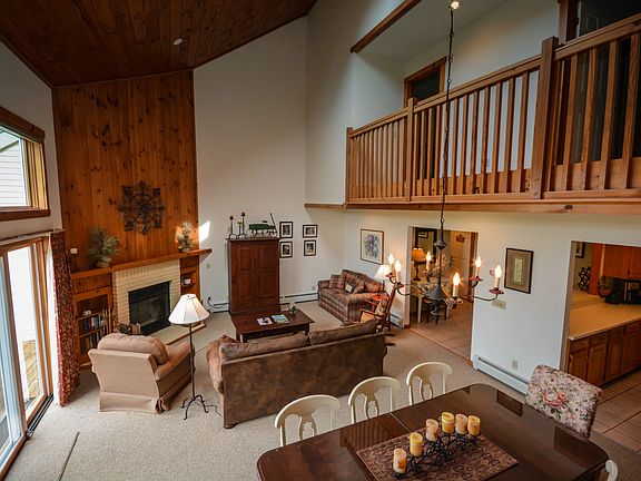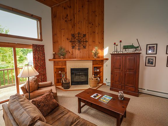Beautiful Greenspring at Mount Snow 3 bedroom Middlebury style unit. Spectacular views of the ski mountains from this unit as well as meticulous landscaping, covered front porch and rear deck to enjoy the outdoors and exposure. This unit sits off the road for more privacy and parking. The privacy is uncommon in developments like this but enhances the appeal. More features include open concept living and dining areas, an open kitchen with 2 breakfast bars, great natural light and natural woodwork throughout, new carpet, a laundry room and half bath on the main floor, 2 suites on the upstairs level with balcony, and a suite, gameroom, owners closet, office space, and walkout, in the lower level. This is complemented by the amazing Greenspring amenities including clubhouse, indoor pool, full gym, locker rooms, tennis, landscaping, wood, and direct shuttle service to the ski mountain. Hot tubs are allowed to be installed outside below the deck with exposure to the view. A must see!