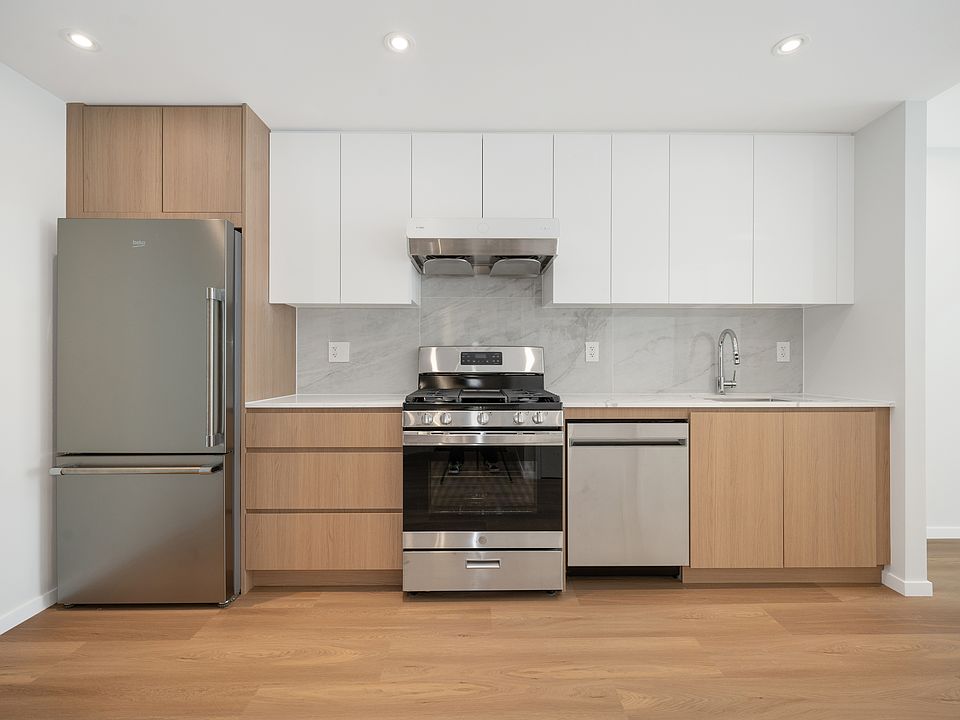 Residences include spacious walk-in closets, in-unit washer-dryers, and air conditioning. Large windows fill each home with natural light, creating bright and inviting spaces. The units also boast luxurious bathrooms and chef-inspired kitchens equipped with convection ovens, outside-venting hoods, and top-of-the-line appliances. For your convenience and security, the building offers elevator access, a large common area, outdoor decks, a Life Fitness gym, and a virtual doorman.