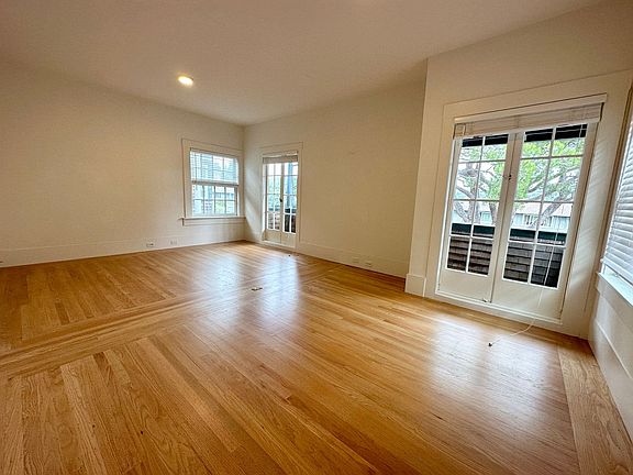 Extra Large 2 Bedroom 1.5 Bath featuring: Updated Kitchen with Stone Countertop and Stainless Appliances Updated Bathrooms with Stone Tile and Nice Finishes Hardwood Floors Throughout Wide Hallways and Bright/Light Throughout 2 Living Room Spaces, One with Fireplace Extra Office Sun Room Area Back Patio Excellent Location across the street from San Francisco Yacht Club Washer and Dryer in Unit Covered Carport Parking *This unit is above small office (not retail) space that is only used during normal business hours. Managed by The Belvedere Land Company