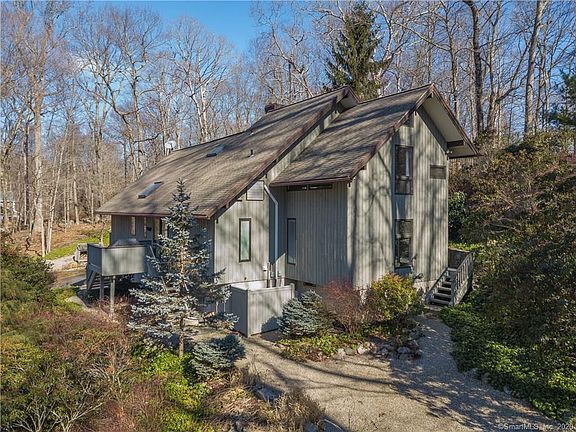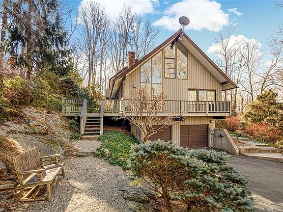 Chic renovated contemporary in a private setting. The scenic driveway leads you to the property with walking paths, lovely rock gardens, outdoor fire pit, garden shed and decks for warm weather outdoor entertainment. The chef in the family will love the newer kitchen with sub zero, six burner gas range, high quality cabinetry, granite counter tops, and a walk-in pantry. The dining room flows into the family room with vaulted cathedral ceiling, walls of glass, wood burning fireplace and sliders everywhere to the extensive decks and gardens. Two bedrooms and an updated bathroom complete the main level. The upper level has a spacious master suite, luxury master bath and a loft/office. The lower level has generous storage space and a work bench. Flexible living spaces.