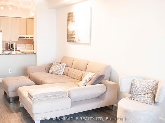Discover this immaculate 1-bedroom plus den unit boasting a highly practical and bright layout. Flooded with natural light thanks to floor-to-ceiling windows, you'll enjoy clear, open views and sleek laminate flooring throughout. The versatile den is perfect as a home office or a genuine second bedroom. Nestled on a surprisingly quiet street with direct access to scenic trails, this location truly has it all. Leave the car at home! You're just a short stroll to Scarborough Town Centre, the Super Centre, and essential public transit. Quick access to Highway 401 makes any commute a breeze. Enjoy fantastic building amenities, including a 24-hour concierge, a vibrant party room, a fully equipped gym, a relaxing sauna, and both an indoor and outdoor swimming pool. Plus, there is ample visitor parking for your guests. This is urban living with a peaceful twist!