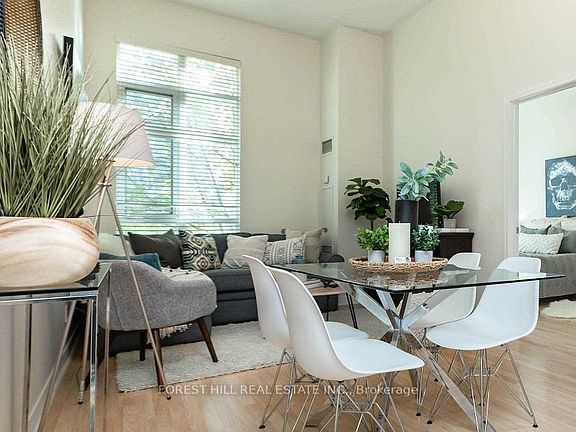 Discover this exceptionally rare stacked condo townhouse boasting direct entrance from the ground level, East/West exposure, two skylights, and soaring 11-foot ceilings. Expansive windows fill the home with natural light year-round, creating a warm and inviting atmosphere. The spacious primary suite features a walk-in closet with a window and a den area perfect as a serene retreat or a bright home office.Surrounded by lush gardens and mature trees, this home feels like a private oasis while keeping you connected to everything you need. Just 2 minutes to Hwy 401, a 5-minute stroll to the subway, and steps to vibrant theatres, dining, and shops. You'll fall in love even more when you see it in person! Building amenities include: 24-hr concierge, fitness centre, indoor pool, party room, and plentiful visitor parking right outside your unit door.