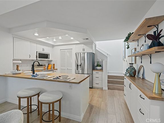 Welcome to 83 Briarglen, located in the highly desirable Woodbridge community of Irvine. Master Suite on the main level. This beautifully upgraded end unit townhome offers 2 bedrooms plus an office which can used for a 3rd bedroom and 2 full bathrooms, including a convenient main-floor bedroom and full bath. Flooded with natural light, this end unit features an open-concept floor plan with built-ins, numerous windows, vaulted ceilings, and a cozy fireplace that creates a warm and inviting atmosphere. The sliding door opens to a spacious private patio, providing a serene outdoor retreat perfect for entertaining or relaxing. The updated kitchen offers edge grain butcher block countertops, stainless steel appliances, an apron farmhouse sink, and ample linear design cabinetry. The in-unit laundry room is conveniently located just off the kitchen. Upstairs, the spacious primary suite offers privacy and comfort, while an enclosed loft area provides a versatile space ideal for a home office, guest room, or den. Additional highlights include wide plank engineered hardwood floors throughout, including the stairs, recessed lighting, and a detached, enclosed one car garage. Located just steps from Briarglen Park, offering a swimming pool, spa, volleyball court, and large grassy areas perfect for outdoor fun. Enjoy the exceptional amenities of the Woodbridge community, including lakes, Lagoons, additional pools, spas, tennis courts, and parks. Situated in the award-winning Irvine Unified School District. World-class shopping, dining, and easy freeway access complete this fantastic opportunity. Schedule your private showing today.