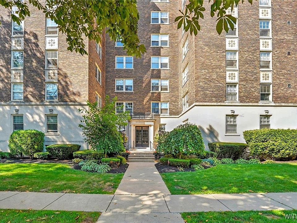 Welcome to 83 Bryant! A gorgeous co-op building with all the old world charm of traditional Buffalo architecture. Enter the foyer, meticulously preserved in its turn of the century beauty, and up to unit 1C. This unit has been updated and features gleaming hardwood flooring, charming bathroom, and modern kitchen, updated with new cabinets, butcher block countertops, and stainless steel appliances. Walk-in pantry off the kitchen offers plenty of storage, and the potential to install an in-unit washer/dryer. All windows face North to the vibrant private yard, fully fenced-in and only accessible to residents. The showstopper to this building is the rooftop, with magnificent 360 views of the city. Centrally located in the Delaware District, you are minutes away from Downtown, Elmwood Village, and all the restaurants, shops, parks, and stores the city has to offer! If you are looking for convenient, modern living, look no further!