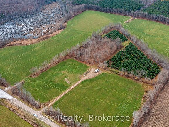 Discover this picturesque 50-acre parcel just around the corner from Chesley Lake. The gently rolling landscape features a mature hardwood bush at the centre of the property, along with a large pine and spruce plantation complete with trails throughout. A potential building site is already in place with a driveway designed for a walk-out basement. A trailer on the property is also included. The farmland has just been seeded into hay and was previously cash-cropped. The south end offers a natural wetland area, attracting a wide variety of wildlife. Ideal for hunting, birding, and outdoor recreation. With two entrances and beautiful views across the acreage, this property is perfect for a new build, farm expansion, or a long-term land investment. (Fibre optics internet cable, serviced by GBTel, in green box by the gate post.)