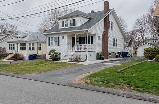 This Colonial has been lovingly cared for and is ready for new owners! Warm, inviting, comfortable are words to describe this home. It features a fireplaced living room, formal dining room with built-in hutch, a cozy office, plus a remodeled kitchen with cherry cabinets/stainless steel appliances/granite countertops. There is a first-floor family/sunroom/TV room directly off the kitchen in the rear of home for privacy and a convenient first-floor laundry in the mudroom, plus a cozy Farmer's porch and a spacious deck. Upstairs has three bedrooms, all with ceiling fans & good sized closets with built-in shelves, and a remodeled full bath w/subway tile shower. The basement is clean and neat, and has a private music room/den. Newer (2014) boiler, and updated electrical. Roof is about 11 years old, vinyl siding, and new vinyl windows for an easy-care exterior! Spacious fenced-in back yard with a storage shed. All situated on a dead-end Side street yet convenient to the highway and T.