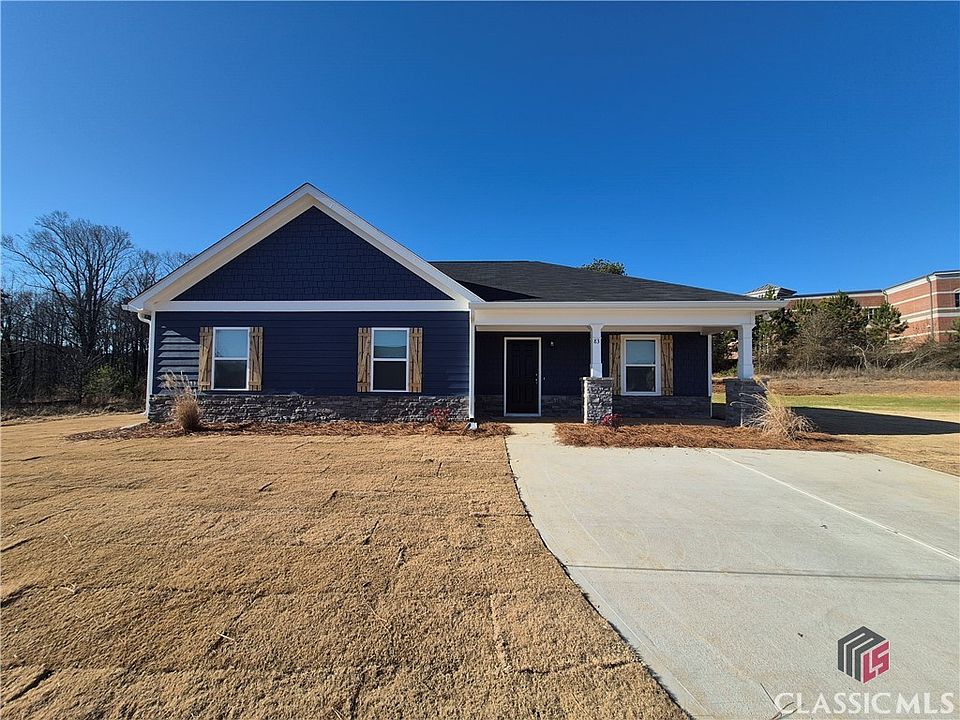 This brand-new, 4-bedroom, 2-bathroom home is one of the first to become available in this exciting new subdivision! The open-concept design features stunning granite countertops, stainless steel appliances (excluding the fridge), and luxury vinyl plank flooring in the common areas, complemented by plush carpet in the bedrooms. The primary suite is conveniently located on the main floor, boasting vaulted ceilings and a spacious ensuite bath with a double vanity for added luxury. Additional features include a laundry room conveniently located next to the guest bath, a large rocking-chair ready front porch, and a sprinkler system to keep your lawn lush and vibrant year-round! Perfectly located in Statham, this home is within walking distance to Bear Creek Middle School and offers easy access to Highway 316, making commuting a breeze. Enjoy a quick 20-minute drive to Athens for shopping, dining, and entertainment. Don't miss your chance to own this beautiful new home in an up-and-coming neighborhood! Other floor plans available at 53 Charlotte Place, 69 Charlotte Place, and 32 Charlotte Circle.