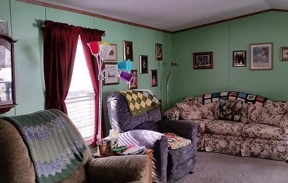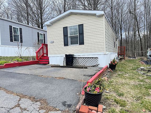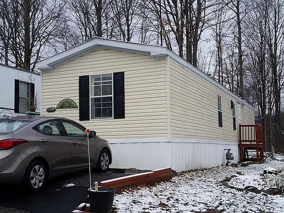 2003 Liberty manufactured home. Located in a quiet 55+ community. The monthly community fee is $465.00; this covers trash removal, street snow removal, and real estate taxes. There is a one-time refundable co-op fee of $100.00. This home features an open concept floor plan with an eat-in kitchen, private laundry, two nice size bedrooms, and 2 baths. Easy care country yard featuring an open deck and nice garden with space for barbecue. This is a bank foreclosure being sold as is. Needs paint paper and a good cleaning.