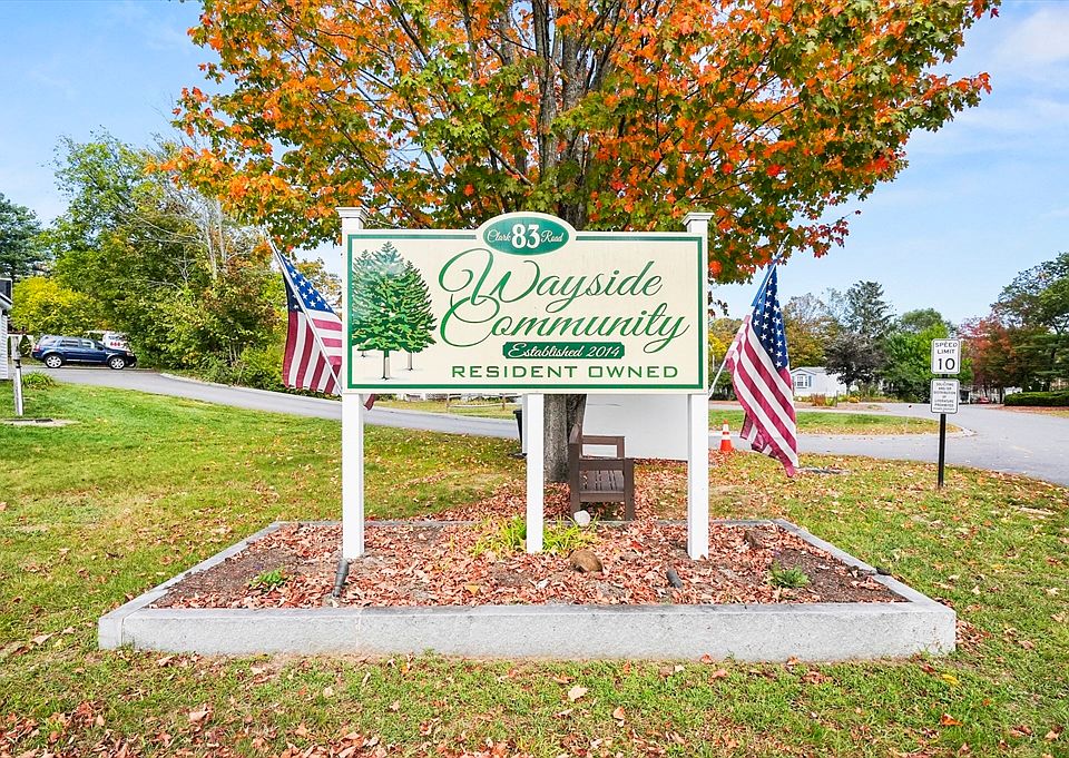 Welcome to Wayside 55+ Community! Fixer-upper with some upgrades — come finish the job! This partially renovated home has huge potential and is bursting with natural light and charm. Enter into the inviting sunroom featuring a wall of windows — the perfect spot to enjoy your morning coffee or unwind with a good book. The spacious living room offers a cozy gas fireplace and direct access to your back deck for seamless indoor-outdoor living. The sun-filled eat-in kitchen includes a dining area with a lovely bow window that captures the natural light. A comfortable bedroom with ample closet space, a full bath, and a laundry room that could easily be converted into a second bedroom complete this home. Some updates have already been done — a new roof (2021) & a solid deck built in 2022. The shed is wired for electricity, offering great utility. With central air and just a few finishing touches needed — you can make this light, bright, and airy home truly shine again!