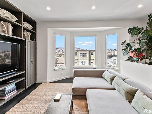 This stylish three-bedroom, two-bathroom single-family home started its life as a modest Victorian perched on Bernal Heights' coveted western slope. In 1989 it was expanded, and the foundation replaced, with permits. If you're looking for a home with abundant natural light and panoramic views, then this might be the one! Step inside to find an open plan living, dining, and foyer area that flows seamlessly into a remodeled kitchen with quartz counters. An adjacent pantry amps up the storage. A full bathroom, small bedroom and laundry closet complete this level. Upstairs, the primary suite provides an en-suite bath, huge attic storage room, and a view deck with a lush garden just outside the door The lower level features an additional bedroom with its own deck for even more outdoor enjoyment. Imagine sunsets over Twin Peaks, and watching the downtown skyline lighting up every night. This home is nestled on a quiet, residential street, but is just steps from Mission and Cortland; with all of their restaurants, shopping, and bars just moments away. Plus there's a one-car garage, so no need to search for street parking. Walk Score of 96 - A Walker's Paradise and a Transit Score of 83 - Excellent Transit.