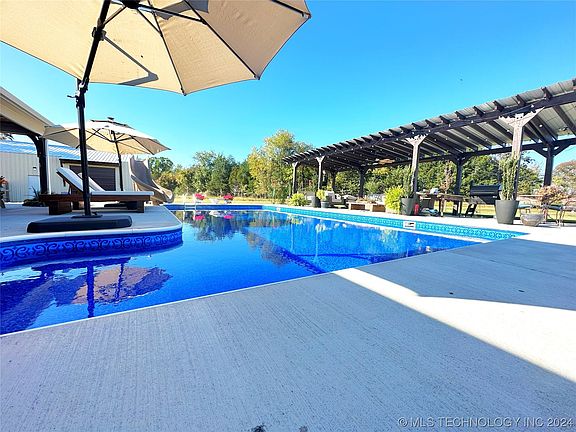 BEAUTIFUL CUSTOM HOME WITHIN MINUTES OF LAKE EUFAULA! Are you looking for the ultimate package? Look no further than this 4 bedroom and 3.5 bathroom home. You will be in in awe when you walk into this house. The large open foyer looking in the dining room at the brick pillars and large wood beams will surely impress. There is a office off the foyer. Into the Kitchen you will see the large island with granite countertops, double oven and gas cook top. The hidden pantry is a chefs dream. The large living room features a beautiful fireplace with a vaulted ceilings with room for everyone. The master bedroom features vaulted ceilings as well, with the bathroom that has a soaker tub, large walk in shower, walkin closet with access to the laundry room. There are two more bedrooms and one and a half bath on the main floor. There is an upstairs bedroom and bathroom that has TV room off of it for guest to enjoy. The outside features an amazing 8 ft deep swimming pool that is copper ionized. The pool has a diving board, slide and a swim platform for the little ones. You will enjoy sitting under the pergola by the pool or covered back porch enjoying the Oklahoma sunsets. There is also a 30x50 insulated shop with electric and 10 foot insualted doors for all your storage needs. Sitting on three lots there is plenty of room to roam. Come check this home out and call it your home today! Give me a call for your private showing!