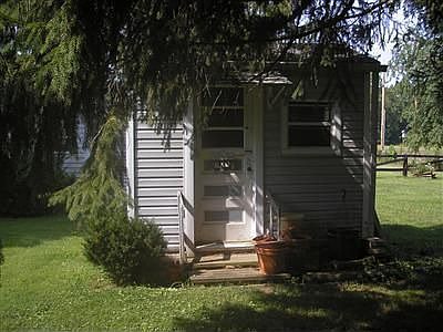 28' x 14' recreation room with bar in the basement - Charming breakfast nook off the kitchen - 400 sq ft attic could be finished into living space - situated on 2.267 acres with a small stream across the back of the property - full bath with ceramic tiled walls and floor - 10' x 10' extra room in basement - Spacious 25' x 17' living room with dummy fireplace - covered front porch, back porch and side porch - large cement pool in the back yard (empty) - 12' x 10' barn and 6' x 8' shed - double pane vinyl windows - updated electric - Rheem 90 plus gas furnace - covered deck - large 2 car detached garage - located directly across the street from the Greene County Fairgrounds.