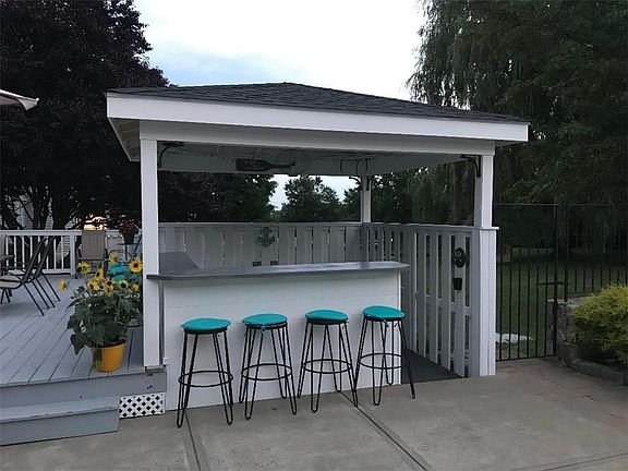 PERFECT HOME FOR ENTERTAINING, BEAUTIFUL IN-GROUND HEATED POOL, HUGE PATIO, IMPRESSIVE STONE WALLS, OUTDOOR BAR & BBQ FIRE PIT,LANDSCAPED LIKE A GOLF COURSE. INTERIOR IS JUST AS BEAUTIFUL, FAMILY ROOM OFFERS VAULTED CEILING & STONE FIREPLACE WITH SLIDER TO VERY LARGE DECK AREA. KITCHEN IS FULLY APPLIANCED WITH GLEAMING GRANITE COUNTERTOPS, SHINNY HARDWOOD FLOORING THRU-OU, FORMAL DINNING ROOM, LARGE ENTRY FOYER, COMFORTABLE DEN WITH WINE CABINET. MASSIVE MEDIA ROOM WITH SEATING FOR 12, 100" PROJECTION TV FOR ALL THE BIG GAMES, OR ACTION MOVIES. HOME HAS ALL THE NORMAL BELLS & WHISTLES, CENTRAL A/C, ALARM, INSULATED WINDOWS, NEWER ROOF, EXTERIOR RECENTLY STAINED. HOME HAS A FORMAL DINNING ROOM & ALSO EVERYDAY DINNING AREA. MASTER BEDROOMS IS LARGE WITH STUNNING BATH & GIANT WALK-IN CLOSET, LAUNDRY IS LOCATED ON 2ND LEVEL FOR CONVENIENCE. LOWER LEVEL HAS MULTIPLE STAIRWAYS, AND LOTS OF ADDITIONAL SPACE, STORAGE AREA & UTILITIES ARE TUCKED WAY OUT OF SIGHT. INTERIOR IS BEAUTIFULLY PAINTED WITH MANY SPECIAL ARCHITECTURAL FEATURES. KICHEN OFFER A LARGE STORAGE ISLAND & PANTRY CLOSET, STAINLESS-STEEL APPLIANCES. NEIGHBORHOOD IS PRESTINE, HOME IS OFFER SUBJECT TO THE SELLERS FINDING SUITABLE HOUSING.