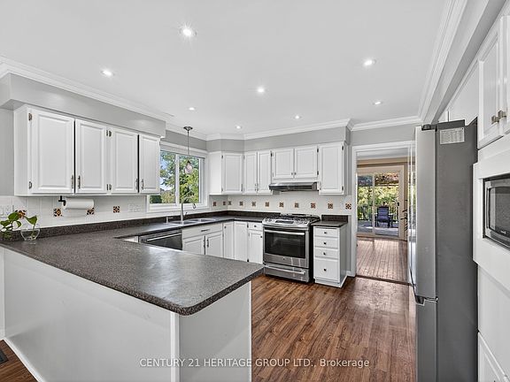 Welcome to one of Bradford's most exceptional executive homes, set on a rare 99.57 x 325 lot - 3/4 of an acre of privacy right in town. This elegant custom 4 + 1 bedroom, 4 level sidesplit offers the space families want with the convenience of being steps to schools & parks, featuring a long private drive, oversized double garage & parking for many vehicles make it perfect for gatherings & multigenerational living. Inside, a bright white eat-in kitchen opens to a spacious dining room with patio doors & a living room featuring oversized window & cozy wood burning fireplace. On the family room level, you'll find a 2nd fireplace alongside a flexible 5th bedroom (currently a gym) & private sauna. A finished basement with garage access, rec room, bathroom & generous storage adds more flexibility. With 5 separate access/entry points, the layout works beautifully for larger families or extended living/nanny/in-laws. Upstairs, the private primary bedroom is a sanctuary, with its own balcony & spa-like ensuite. 3 additional bedrooms are spacious & bright. Outdoors, the backyard feels like a private luxury resort in every season! From the dining room walk out to a pergola with ambient lighting - perfect for summer dinners & evening gatherings. Off the family room, a patio with firepit offers another place to gather. Steps below, the in-ground pool (new heater 2023) with slide & diving board is fully fenced (2023) with a pool house. Behind the garage, a natural toboggan hill adds winter fun, while much of the 325 foot lot stretches out in flat, open land complete with a playset & trampoline. Surrounded by mature trees & perennials, kept lush with inground sprinklers, the property is as functional as it is beautiful. Multiple levels of outdoor living create settings where milestones are celebrated, weekends are well spent & memories are made. Recent updates include new shingles (Aug 2025) &furnace (approx. 2022). Truly unique & beautifully maintained - show with confidence