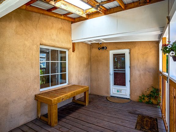 Welcome to this charming adobe home located in the serene town of Rowe, New Mexico. Situated on a spacious 1.22-acre lot, this property offers a tranquil homestead for those seeking a retreat from the bustle of city life. The pitched Pro-panel roof not only adds to the traditional North New Mexico aesthetic but also ensures durability and protection from the elements. Step inside to discover a cozy yet functional living space. This home features two bedrooms, and one full bathroom. The kitchen is equipped with an antique wood stove, adding a touch of rustic charm. Adjacent to the kitchen is a spacious dining room, perfect for enjoying meals with family and friends. The living room offers a comfortable area for relaxation and entertainment. Unwind with a cup of coffee on the front porch while gazing out onto Rowe Mesa. The back porch provides an inviting space bathed in natural light, ideal for enjoying a quiet afternoon. This property also offers a range of practical features. A carport with large storage containers, small greenhouse, and a free-standing workshop providing ample space for projects and hobbies. The fully fenced yard provides security and water catchment barrels offer a sustainable solution for watering plants and gardens. Additional storage space is available in the tool/garden shed, perfect for keeping gardening equipment and tools organized. Stay comfortable throughout the seasons with the forced-air heating system. The property also includes an unfinished basement/ root cellar, water softener and reverse osmosis water filtration system. Don't miss this opportunity to own a unique adobe home, just thirty minutes from Santa Fe. Schedule a visit today and experience the charm this property has to offer.