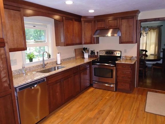 Charming Four Bedroom Garrison Colonial in a great neighborhood setting. Updated kitchen (2015) with quartz counters and eat-in area open to family room with fireplace and access to exterior deck. Updated baths, Two car garage under, heated basement, town water and sewer, 2X6 construction, fully insulated. Total bill for electric, water and sewer and trash removal (that's heat, lights, appliances, water, sewer and trash - see attached document) for the past 12 months is approximately $3,700! No other utility bills! This property is in pristine move-in condition.
