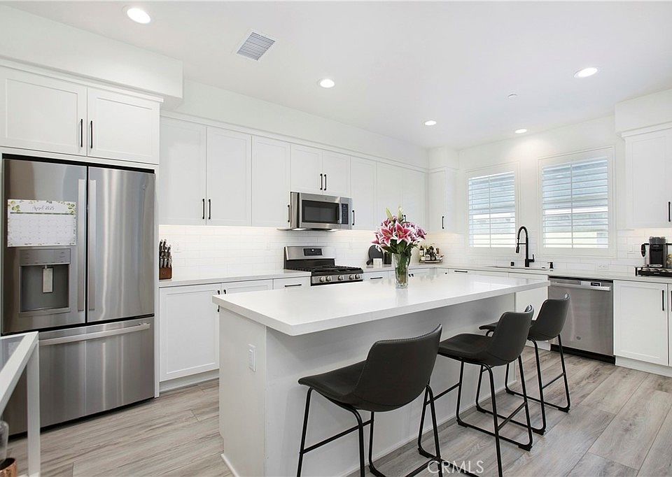 Welcome to 83 Hideaway Loop, in the heart of North Mission Viejo. This stunning tri-level home offers 3 spacious bedrooms, a main-floor den, and 4 bathrooms. The best part of this new home is NO MELLO ROOS! This home combines luxury, comfort, and smart technology in a thoughtfully designed open layout. On the first level you will find a spacious 2 car garage and roomy den, great for an office, playroom, or additional living room. The second level is an entertainer’s dream, featuring a bright, open-concept living space with high ceilings, recessed lighting, and abundant natural light. The chef-inspired kitchen includes a large quartz island, white soft-close cabinetry, stainless steel appliances, and a walk-in pantry. The living area flows seamlessly to a private balcony with a peaceful view. Upstairs, the spacious primary suite offers everything you could possibly want. A walk-in closet, luxurious primary bathroom with a dual vanities, and a walk-in shower with dual shower heads. Two additional bedrooms, a full bathroom, and a conveniently located laundry closet. This smart home is equipped with advanced features including MyHome lighting controls, Kevo, Kwikset smart locks, a Ring camera, Eero Wi-Fi mesh, Honeywell climate control, and MyQ garage system. The attached two-car garage features epoxy floors, an EV charger, and a tankless water heater. The HOA provides resort-style amenities including a large pool and spa, a fire pit, playgrounds, and BBQ dining areas. Ideally located near top-rated schools, shopping, dining, and outdoor destinations like Whiting Ranch and O’Neill Regional Park, this move-in-ready home offers the perfect blend of luxury and convenience.