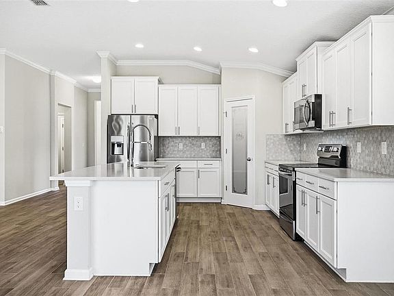 Experience luxury living in this stunning 3-bedroom, 3-bathroom home in the Grand Landings community! Featuring tall ceilings, including a beautiful cathedral design in the open living area, this home showcases luxury upgrades throughout. The gourmet kitchen boasts quartz countertops, cabinets, upgraded appliances, and an elegant etched-glass pantry door. Wood-look porcelain plank tile enhances the living spaces, while ceiling fans with lights are featured in every bedroom, the living area, and the spacious screened lanai. The primary suite is a true retreat with a large double-sink vanity, a massive walk-in shower, and four separate closets for ultimate storage. Enjoy serene views of the preserve and pond from your screened lanai, perfect for relaxing in nature.The irrigation system runs on reclaimed water for added efficiency. Grand Landings offers resort-style amenities including a clubhouse, fitness center, and community pool, all just minutes from I-95, Flagler Beach, shopping, and restaurants. Don’t miss your chance—schedule your private showing today!