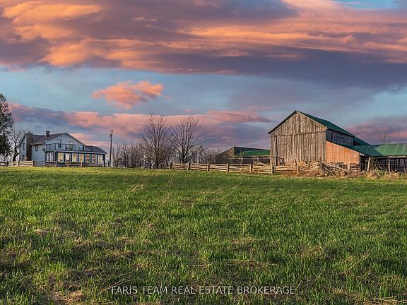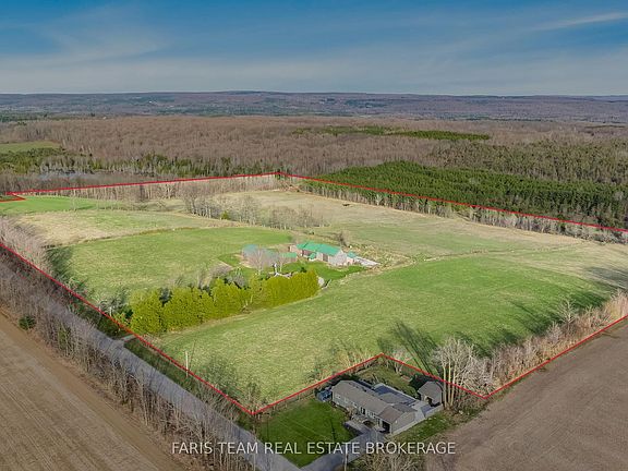 Top 5 Reasons You Will Love This Home: 1) Perched high above the rolling countryside, this spectacular vantage point offers uninterrupted sunrise and sunset views, perfect for gazing out over the serene beauty of Horseshoe Valley to the south and take in the distant majesty of the Blue Mountains to the west, a truly rare panorama 2) Experience the peace and privacy of over 47-acres, with approximately 45-acres of prime, usable farmland, nestled along a quiet sideroad, delivering a tranquil rural lifestyle while still being just a short drive from all local amenities 3) Countryside haven paired with a collection of well-maintained outbuildings, including an implement shed, a combination hay and wood shed, a dedicated workshop, and a classic barn, ideal for farming, storage, or creative pursuits 4) The heart of the home is a large, welcoming eat-in country kitchen featuring a cozy wood stove, perfect for gathering with family and friends, exuding warmth, character, and timeless comfort 5) One of the most beloved spaces in the home, the sunroom provides a peaceful setting to unwind, sip your morning coffee, or watch the changing light over the landscape, an oasis of calm in every season. 1,946 above grade sq.ft. plus a partially finished basement.