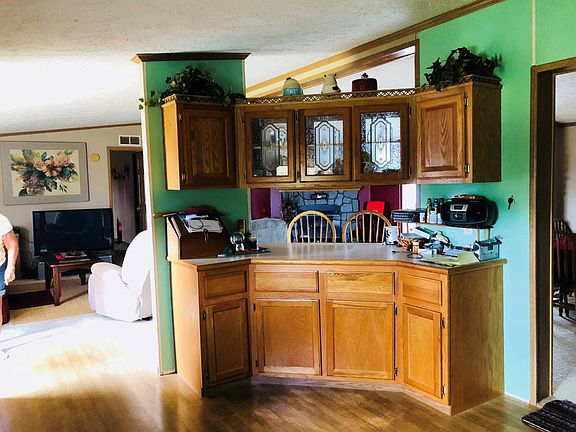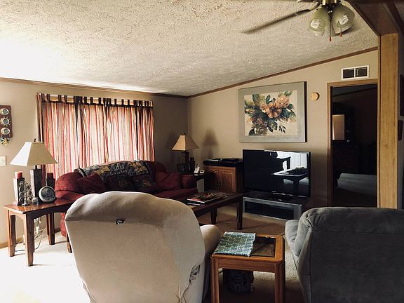 Stunning 3 bedroom manufactured home on 1.65 acres m/l with a beautiful family room, kitchen, and open floor plan living area with lots of closet space and a pretty fireplace. A wonderful garage and a gazebo with a hot tub add to this charming home. The scenery is amazing and a concrete drive allows for an easy approach. Very private and peaceful and not far from town.