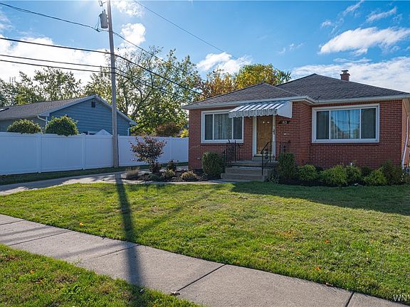 Tour this maintenance free all brick ranch in the heart of Town Tonawanda. Large living room and dining room combo with hardwood flooring. Full Kitchen with ceramic tile backsplash, updated flooring, and stainless steel appliances replaced in 2022. Central air conditioning replaced in 21', High efficiency furnace 23', HWT 24', and roof replaced in 2024. Full basement with half bathroom, recreational room, plenty of room for storage and awaiting your design ideas. Walking distance to Colvin Bus line. Showings start Wednesday 10/15/25. Offers Due WED 10/22/2025 By 1pm.