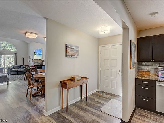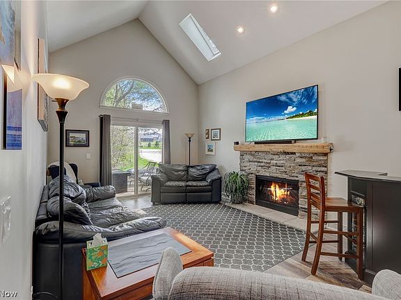 This stunning completely updated 3 bedroom, 2.5 bath end unit condo offers an ideal blend of comfort, style, and convenience, nestled in a desirable location. Upon entering, you are greeted by a spacious living room boasting a cozy fireplace and soaring vaulted ceilings, creating an inviting atmosphere perfect for relaxation or entertaining guests. The newer luxury vinyl plank flooring adds a touch of modern elegance while ensuring durability and easy maintenance. The updated kitchen is a chef's delight, featuring sleek countertops, stainless steel appliances, and ample cabinet space, making meal preparation a breeze. Adjacent to the kitchen is a charming dining room, perfect for enjoying meals with family and friends. Conveniently located on the first floor, you'll find a half bath for guests, as well as a laundry area for added convenience. The primary suite is a serene retreat, complete with a private bath and sliding glass door access to the patio, where you can unwind and enjoy the beautiful view of the pond. Heading upstairs, you'll discover a versatile loft/flex space, currently utilized as a den/family room, providing endless possibilities for customization to suit your lifestyle needs. 2 additional bedrooms offer comfortable accommodations for family members or guests, while a full bath ensures everyone's convenience. Updates Include: Kitchen remodel (2015), Furnace & A/C (2016), carpeting, paint, LVP flooring, all baths completely remodeled (2018), gas fireplace logs, spacious tiled shower in primary suite bath (2019), new roof, siding and gutters w/ guards, garage door opener and thermostat both Wi-Fi enabled (2021), whole house surge protector (2022), new dishwasher (2023) and new hot water tank (2024) New range and refrigerator installed May 2024!! Great location close to restaurants, shopping, entertainment and even easy highway access!